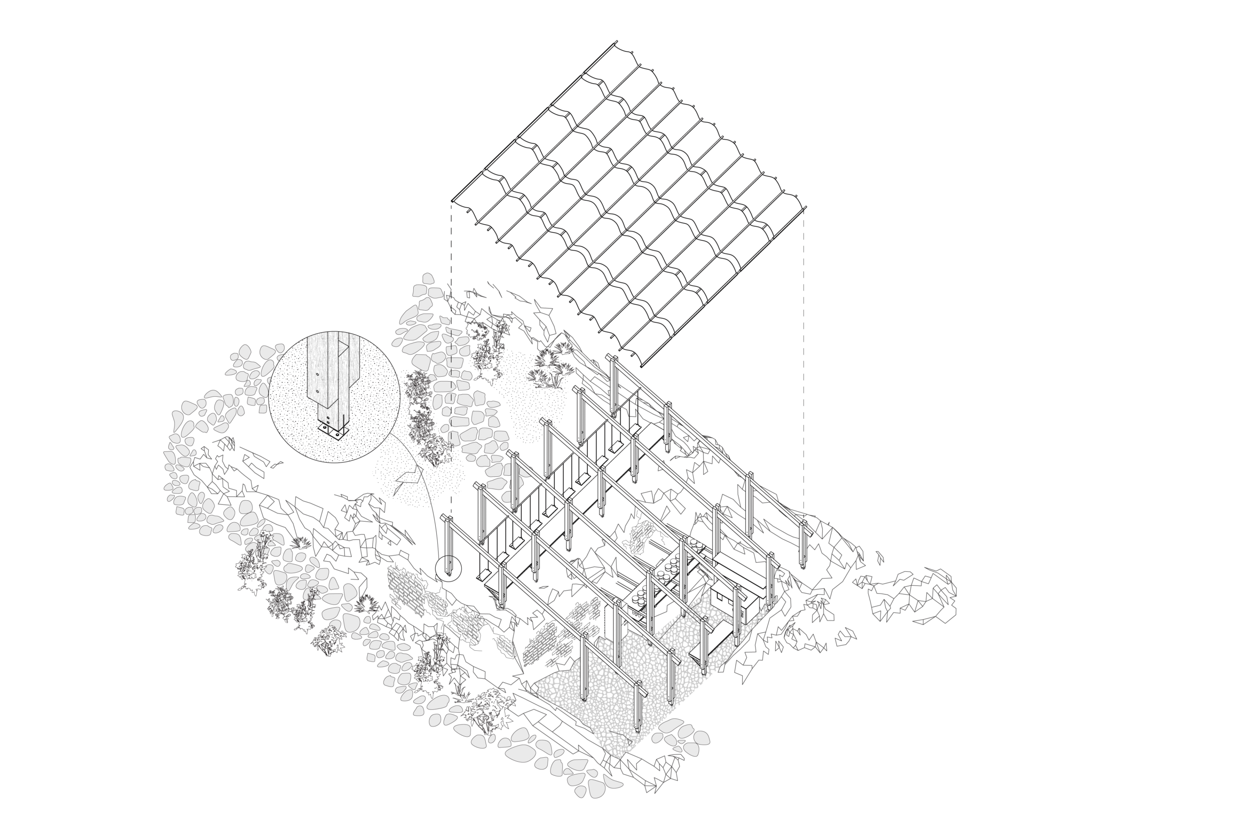 As a precedent, the island of Tinos offers inspiration: there, thousands of kilometers of dry stone walls once preserved soil fertility and ensured long-term cultivation. Similarly, this project seeks to restore continuity through careful repair, low-impact intervention, and cultural reinvestment. Here, permaculture is not introduced as a fashionable label, but as a practical ethic—a method of re-establishing the fragile bond between human labor and ecological sustainability.
