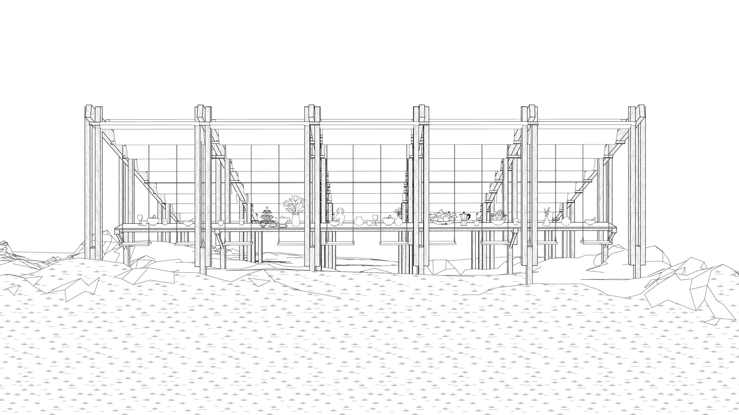 To support this vision, a clear protocol is proposed—defining zones for planting, living, gathering, and rest. The protocol also structures how new guests are invited, how long they stay, and how skills and knowledge are passed along. Rather than enforcing permanence, it encourages rhythms of seasonal return and rotation, echoing the productive temporality of the land itself.